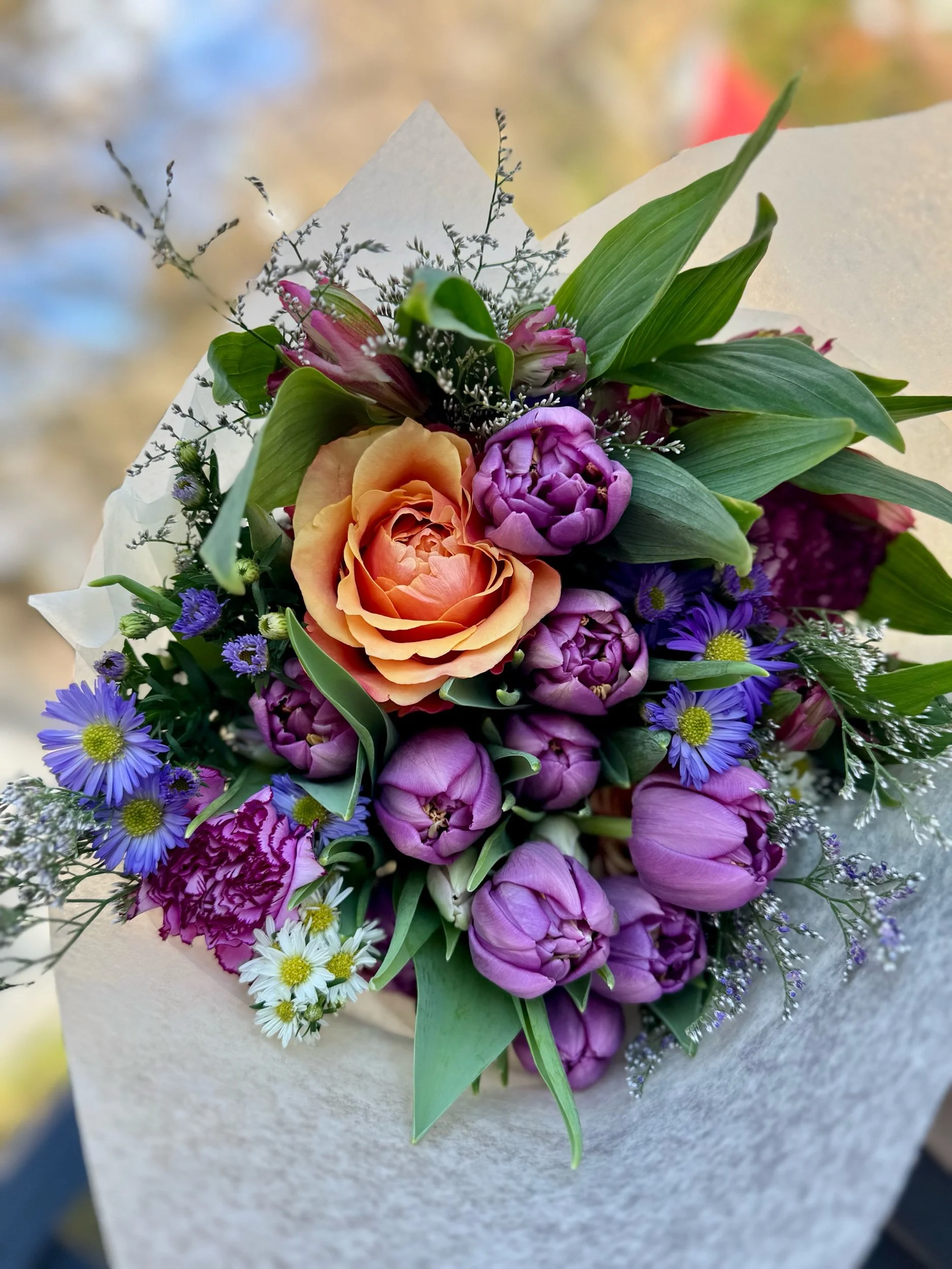 Surprise someone special with a wrapped bouquet of fresh, fragrant flowers!